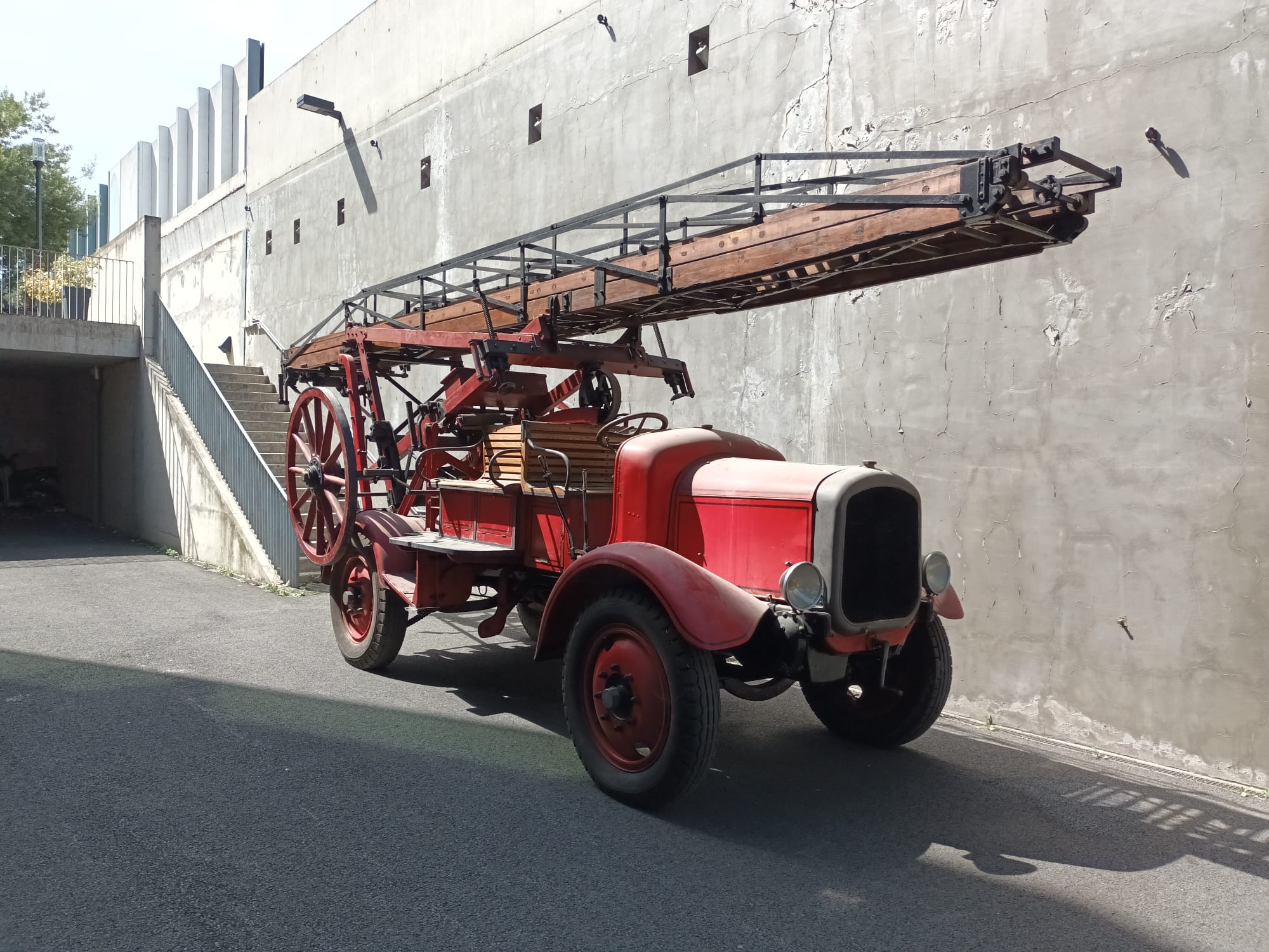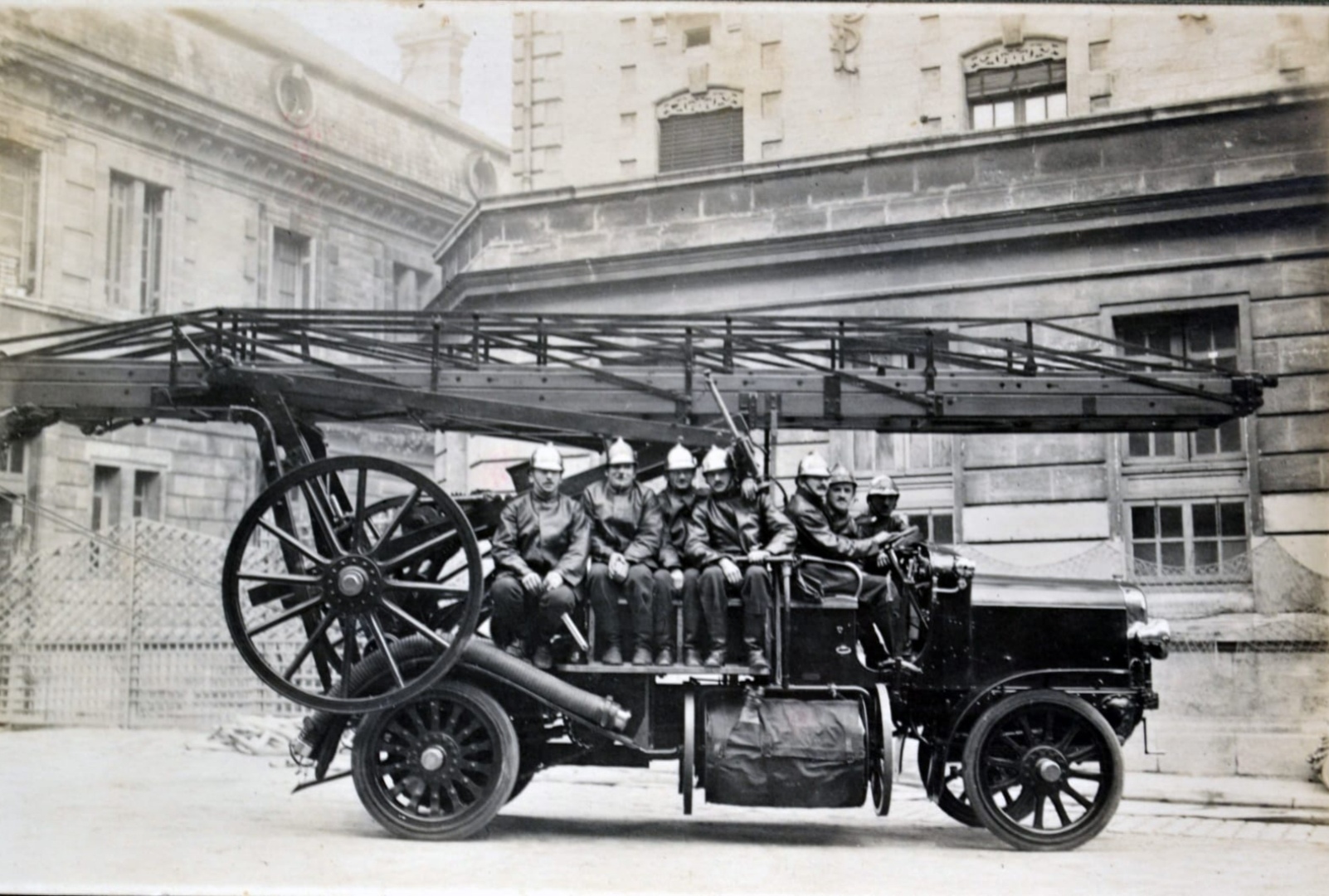 En mai 1922 les pompiers de Bordeaux font l’acquisition de ce véhicule original, doté à la fois d’une pompe permettant d’alimenter 4 lances et d’une échelle en bois de 20 m de marque Magirus. Il permet le transport rapide de 6 pompiers et de leur matériel, rangé dans des coffres sous les sièges, sur les lieux d’un incendie.