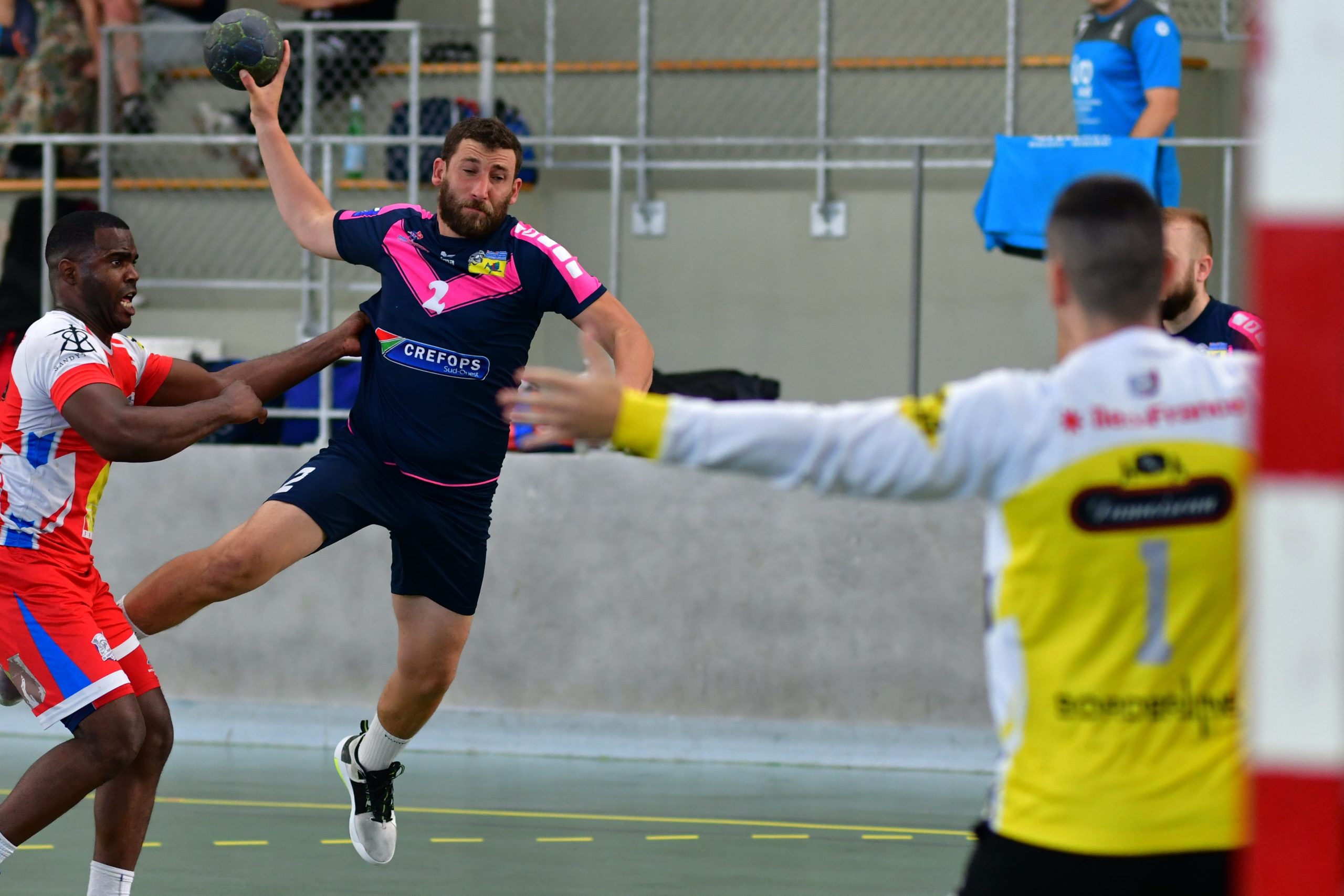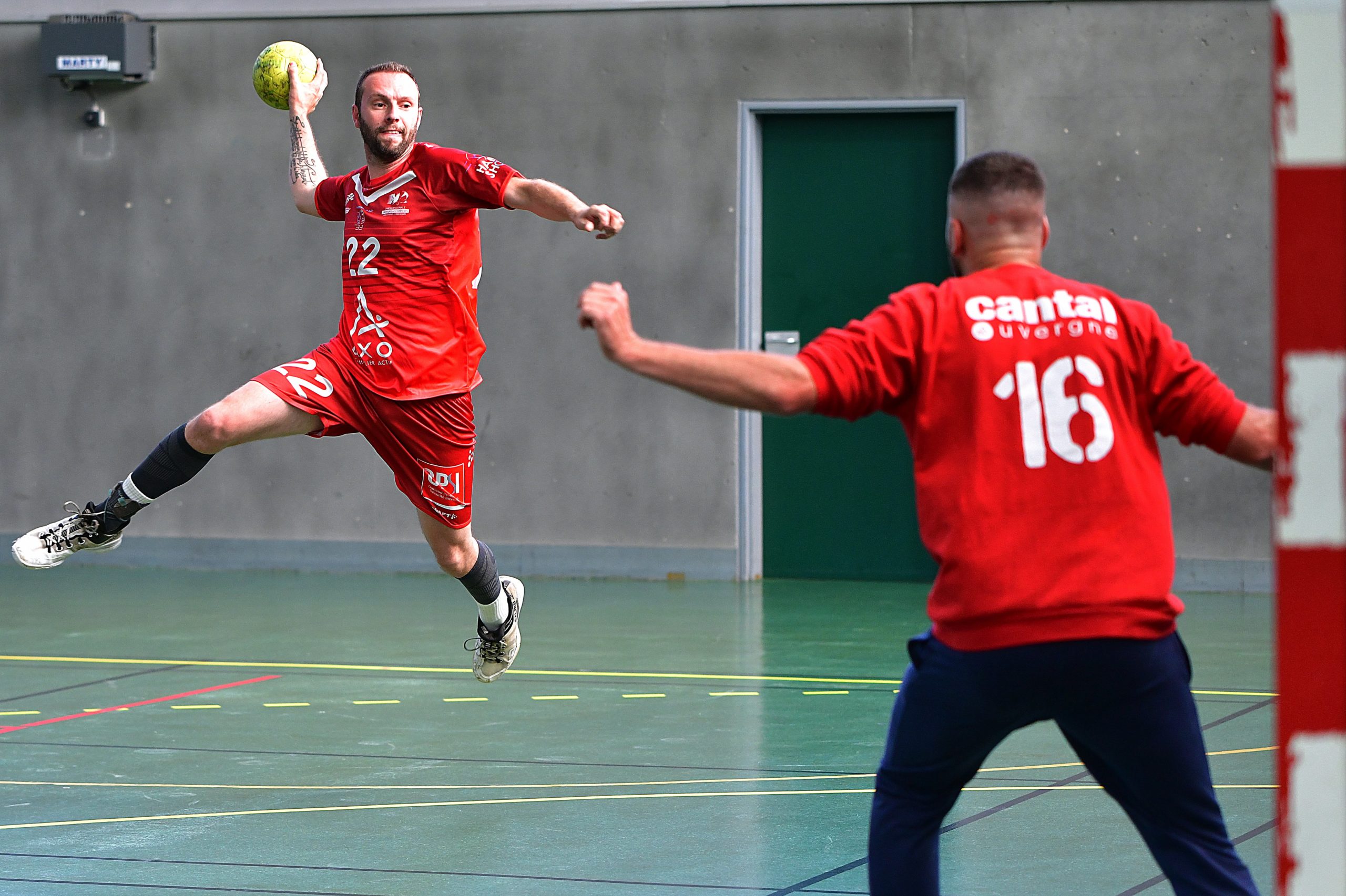 Le premier match de la journée oppose les girondins à l’équipe du Cantal. Après une entame de match plutôt timide, le 33 creuse l’écart pour l’emporter par 16 buts à 7. Notons le très bon état d’esprit des joueurs du Cantal.